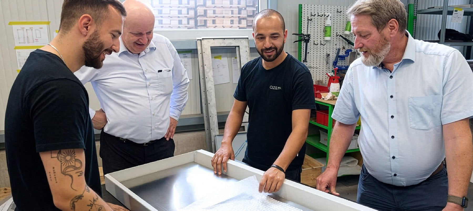 Angenommen, die Teile, die bei uns pulverbeschichtet werden sollen, sind Teil eines größeren Produkts. Zum Beispiel der Rahmen einer Tür für eine CNC-Maschine. Nach der Beschichtung soll die gesamte Tür inklusive Glasscheibe und Dichtungen montiert werden. In diesem Fall profitieren Sie von unserem umfassenden Service der Produktrealisierung.